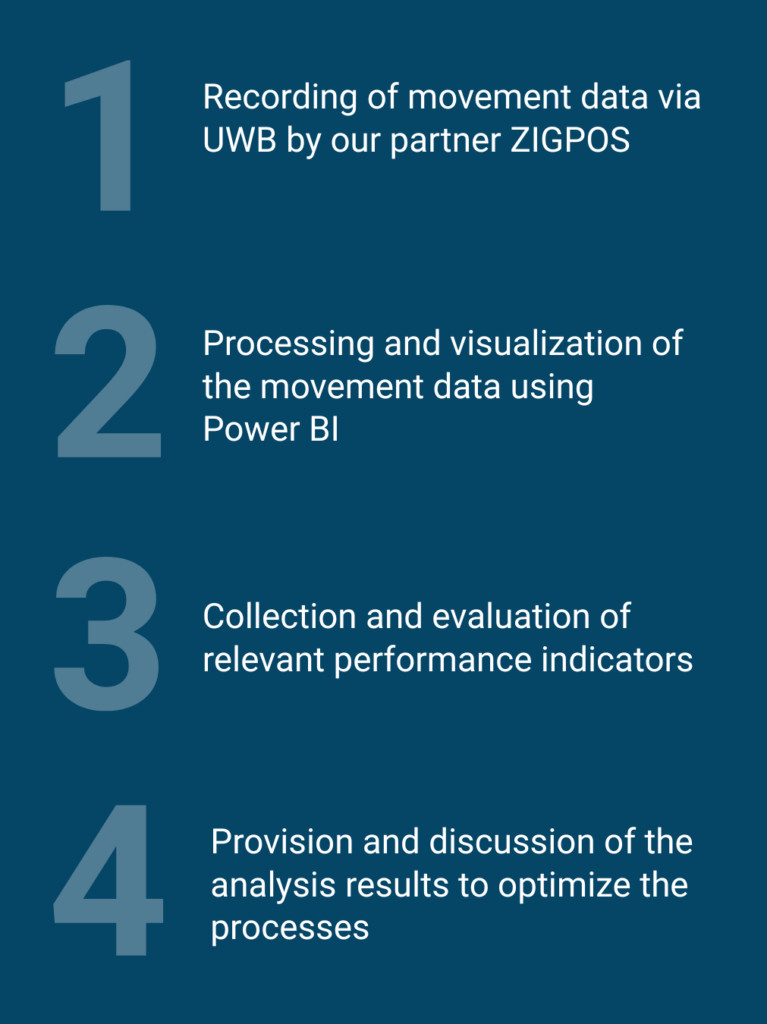 The aim was to create transparency about routes, workloads and process dynamics using real movement data and to derive specific optimization potential from this.
